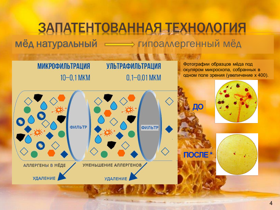 Данные о технологии ультрафильтрации и позиционировании продукта на рынке натурального меда.